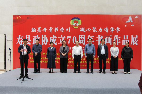 9月24日,寿县政协成立七十周年书画展在新城区安徽楚文化博物馆开幕。市政协主席蔡宜骅宣布书画展开幕。市政协秘书长吕习明,县委书记、县长孙奇志,县政协主席李琼,县委常委、宣传部部长饶洁,县政协副主席李尧利、吴标,县政协秘书长孙纯珠等出席开幕式。