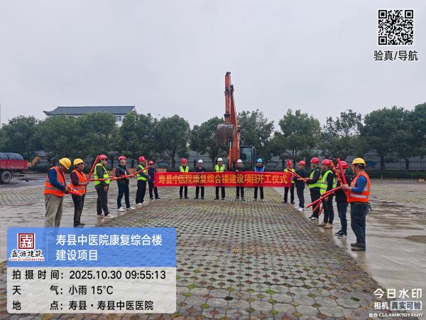 2025年10月30日,寿县中医院康复综合楼建设项目开工仪式正式启动。安徽嘉源建筑工程有限公司总经理史方理,携手中铁九局集团有限公司项目经理衣衷强出席仪式,寿县重点工程建设管理中心、寿县中医院、寿县卫健委相关领导莅临指导,跟踪审计单位安徽瑞邦工程造价有限公司、监理单位南通中房工程建设监理有限公司负责人同步参会,多方齐聚见证这一民生工程的启航时刻。该项目坐落于寿县中医院院内,是集多项复杂功能于一体的现代化医疗建筑,是嘉源公司在民生工程领域的新的建设征程,也标志着公司在大型公共建筑领域的深耕实践迈出坚实步伐。